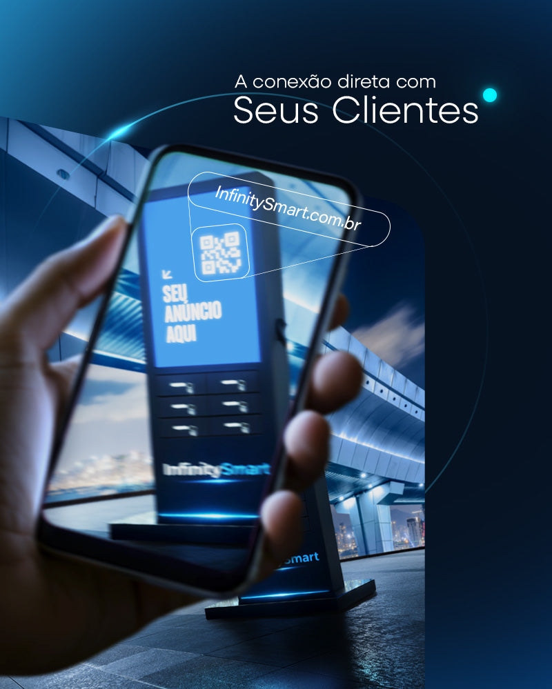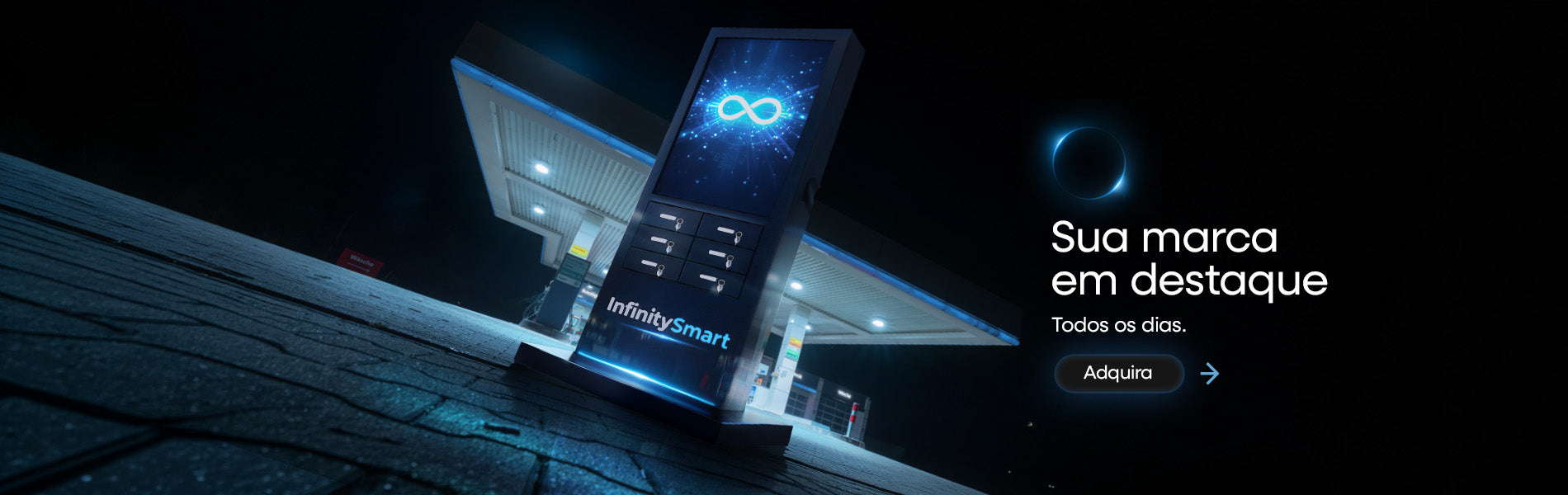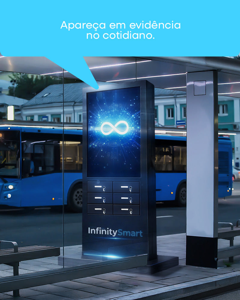 O Totem InfinitySmart exibe anúncios digitais em uma tela vertical de alto impacto, projetada para destacar sua marca em ambientes com grande circulação de pessoas.